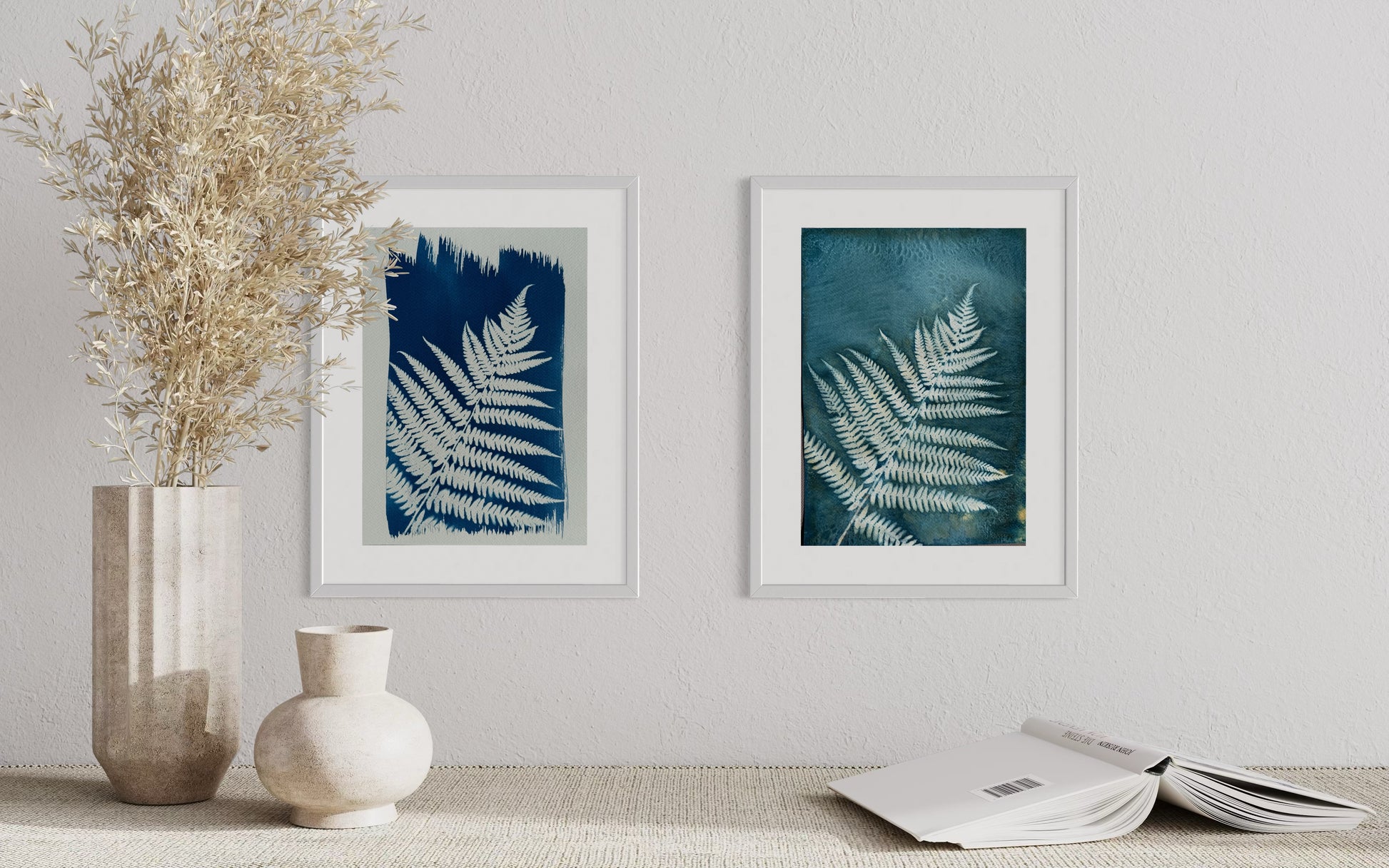 Originele, unieke 'natte' blauwdruk van varenblad uit de Morvan